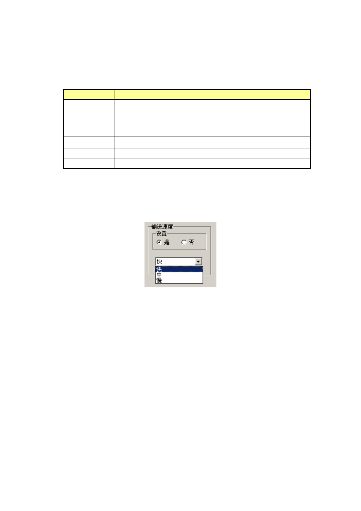 设置电动式供料器的间距输送速度。要变更输送速度时,设置选择“是”,从下拉列表中选择“高速”、