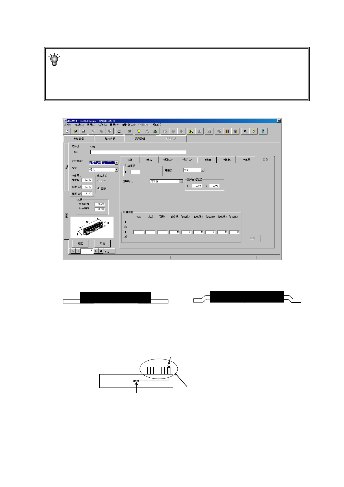 输入从元件识别中心位置(VCS 的中心位置)到进行识别的引脚组的右端引脚的顶端中心位置的 X