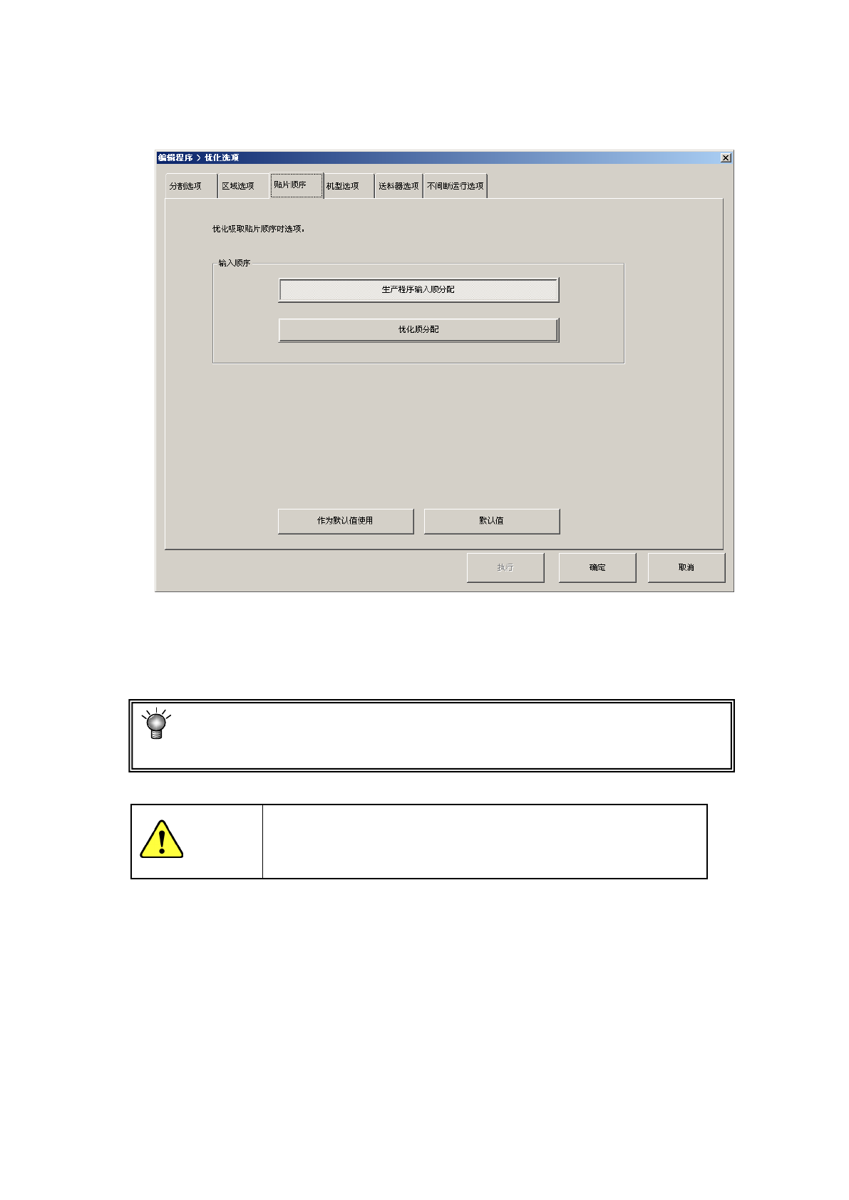 指定贴片数据的排列顺序,是维持输入顺序分配,还是换为优化顺序分配。