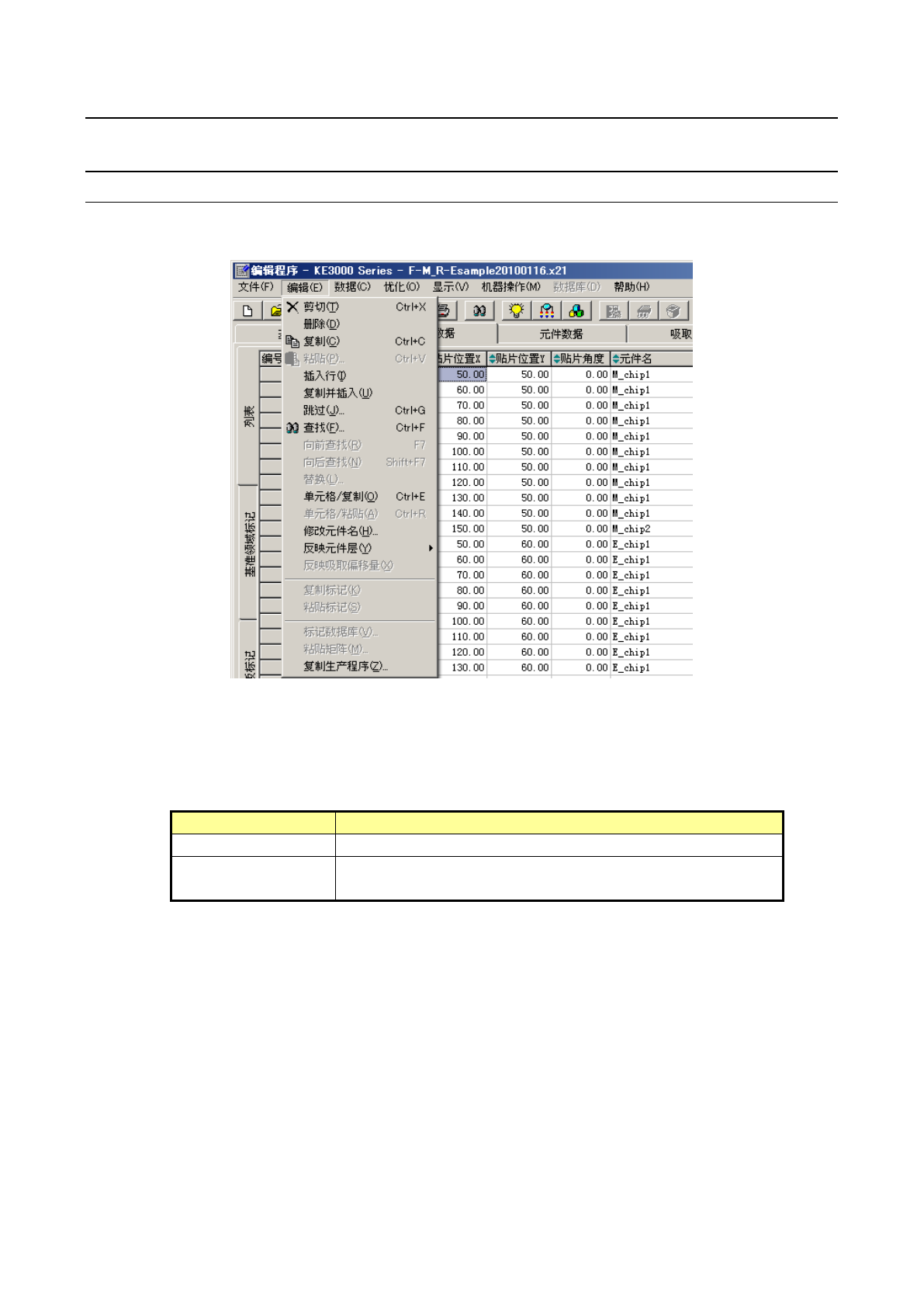 第 1 部 基本编 第 4 章 制作生产程序 (1) 剪切 剪切被选中的行 。 * 本项命令,在使用排序 功能时不能选择 。 (2) 删除 删除被选中的行 。 * 本项命令,在使用排序 功能时不能选择 。 (3) 复制 将选中的行登录 到内存中。要粘 贴在数据中时 ,请执行下列粘 贴命令。 (4) 粘贴 用上述复制命令 所选择的行的数 据被粘贴。 并且,如用贴片 数据选择粘贴命 令,会显示如 下画面。 1) 复制次数 : 指定复 制次数…
