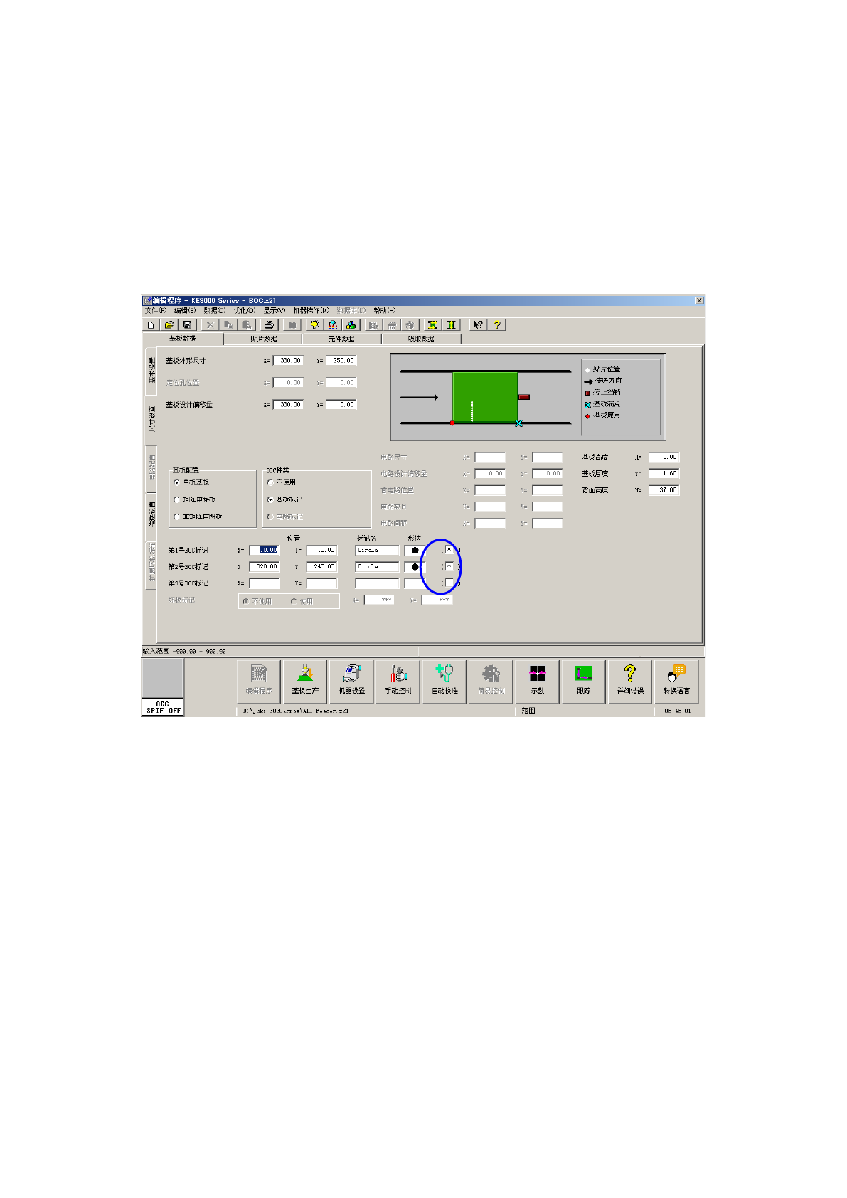 基板或电路上没有BOC标记时,可以将电路图案