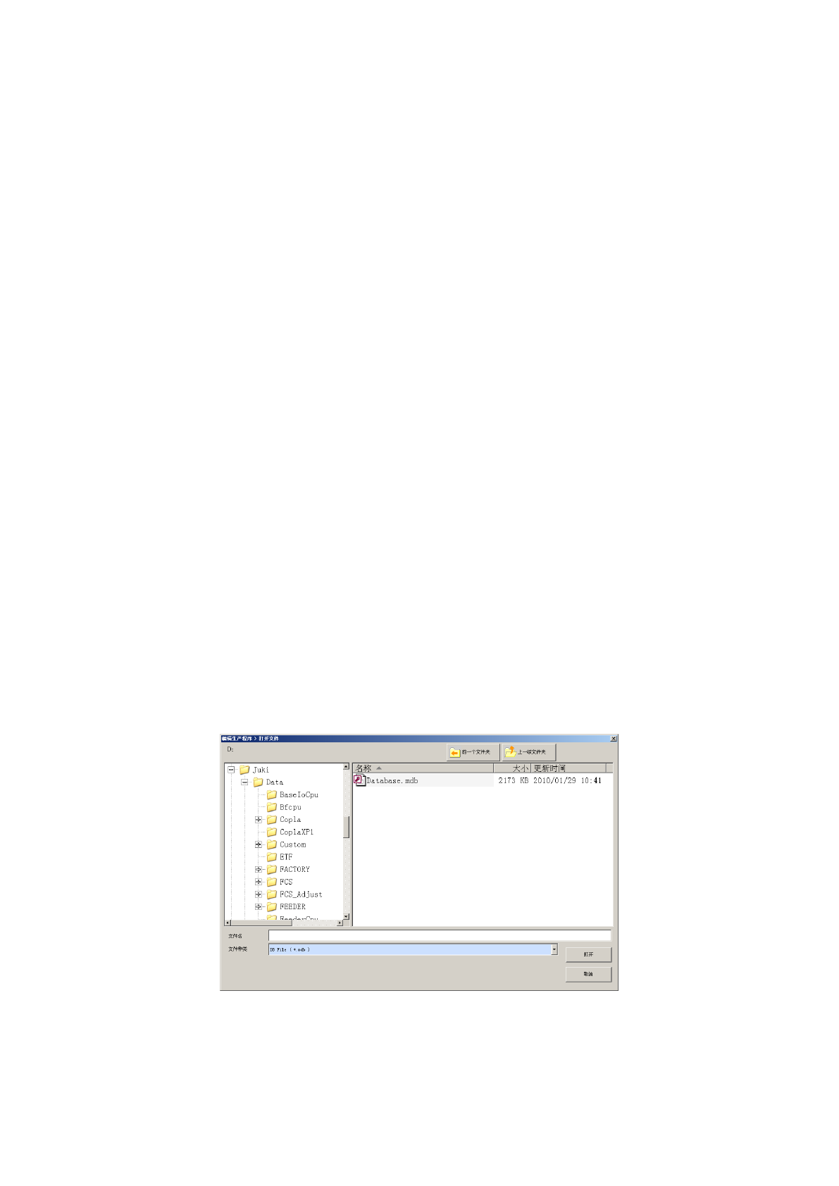 2)单击“浏览”,在“打开文件”画面中选择数据库文件。