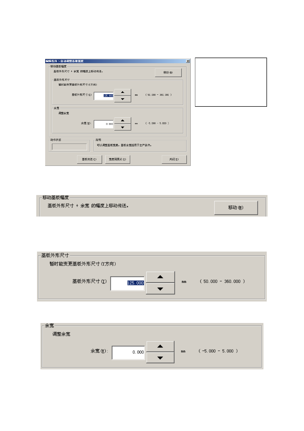 将传送宽度向基板外形尺寸+余宽的位置移动。运行时传送宽度值适用以下项目设定值。