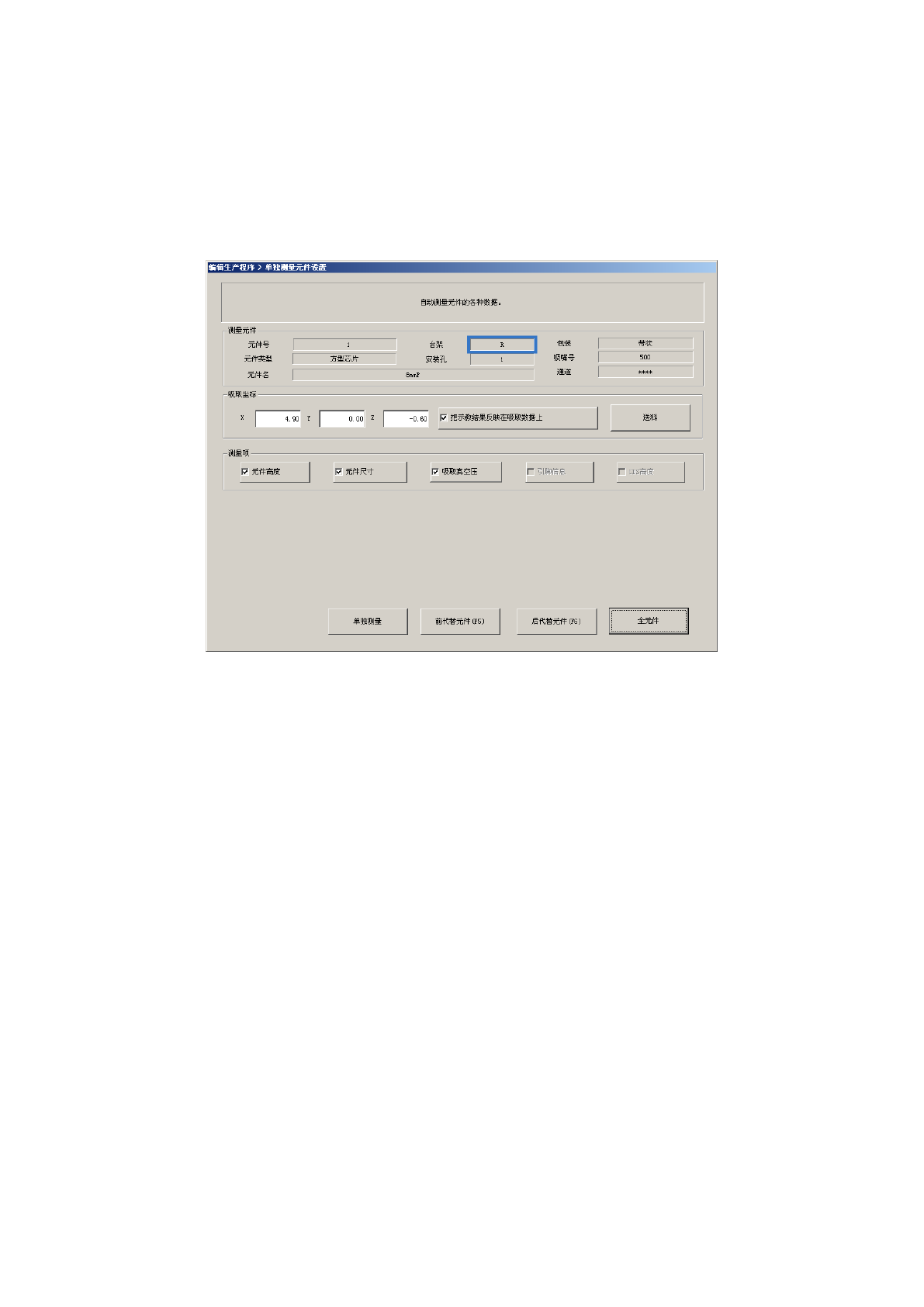 从菜单栏中选择“机器操作”/“测量”/“单独测量”后,显示如下画面。