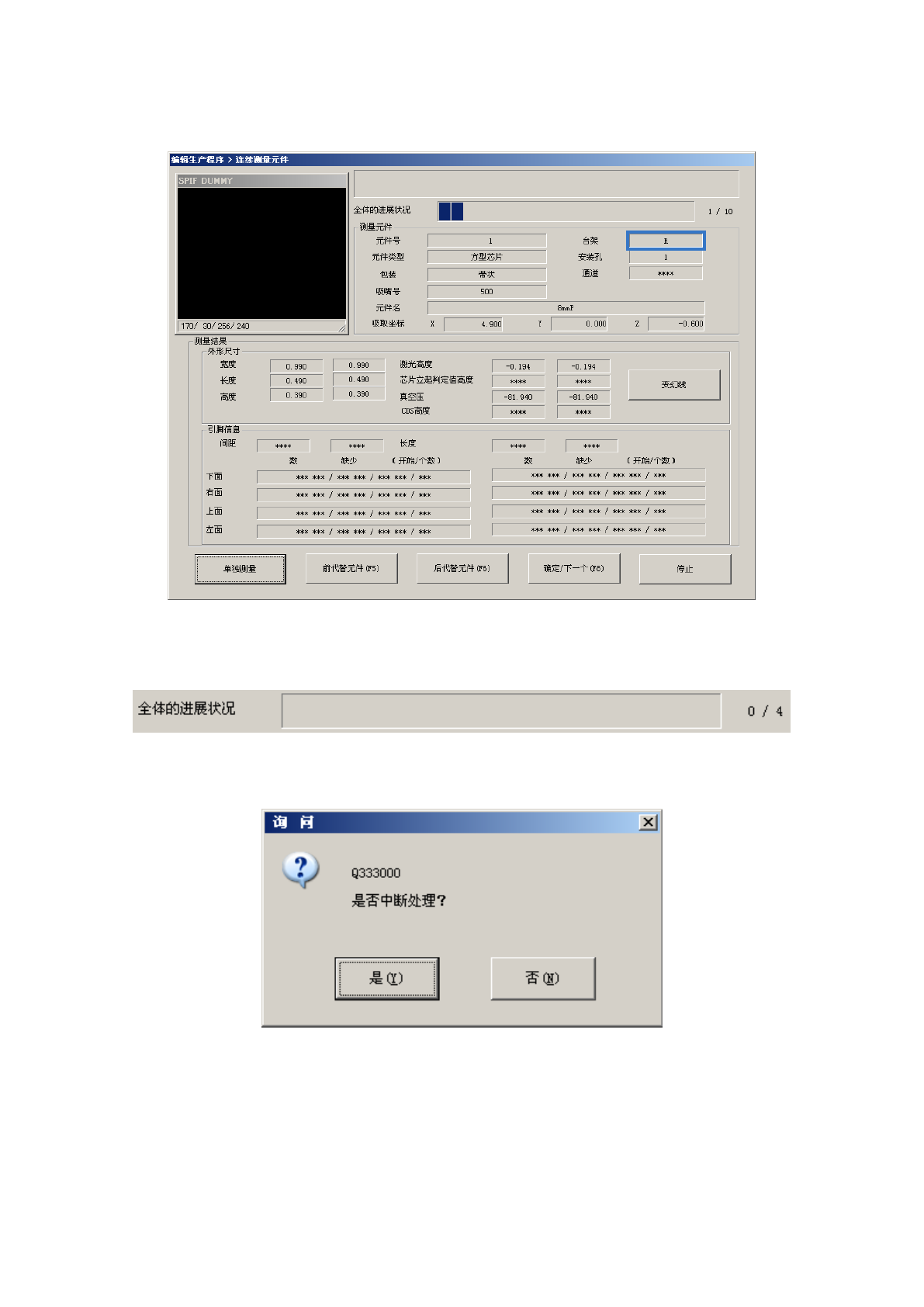 连续测量过程中显示如下画面。显示连续测量的元件内容及吸取位置,依次显示处理内容。