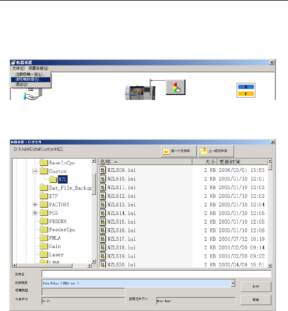 从菜单栏中选择“文件”/“读吸嘴数据”,则会显示“打开吸嘴数据文件”画面。