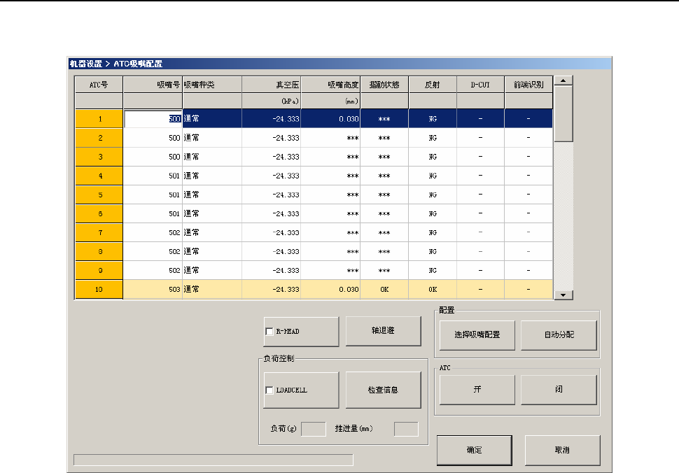 选择“ATC吸嘴分配”后,会显示如下画面。