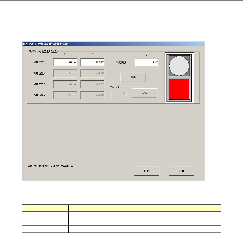装配高度 设置助焊剂涂敷盘的装配高度、旋转型焊锡转印装置的装配高度。