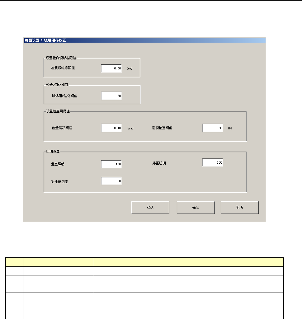 设置检查用阈值 设置镀锡位置偏移检查中检测位置偏移阈值,以及状态检查下使