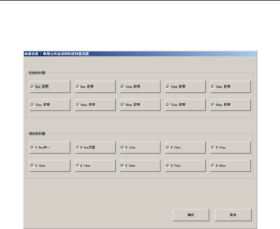 前送料」动作。取消勾选的送料器种类则为「标准送料」动作。