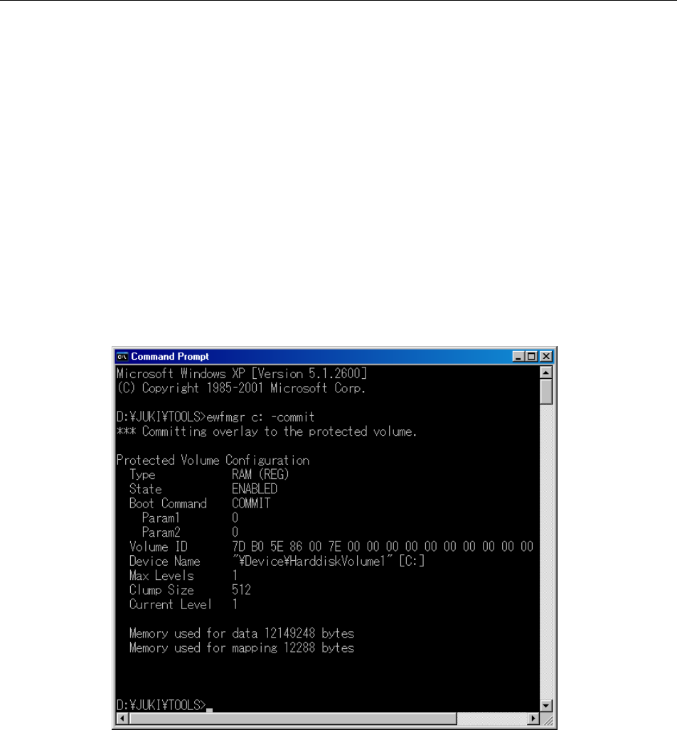 (2)在控制台窗口(console window)(DOS 画面)上,输入“ewfmgr C: -commit”。