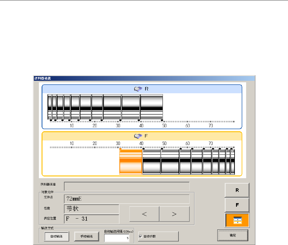 供应位置 放大显示供料器的供应位置。如选择的是 8mm 双轨电子供料器,会显示各通道(轨道)。