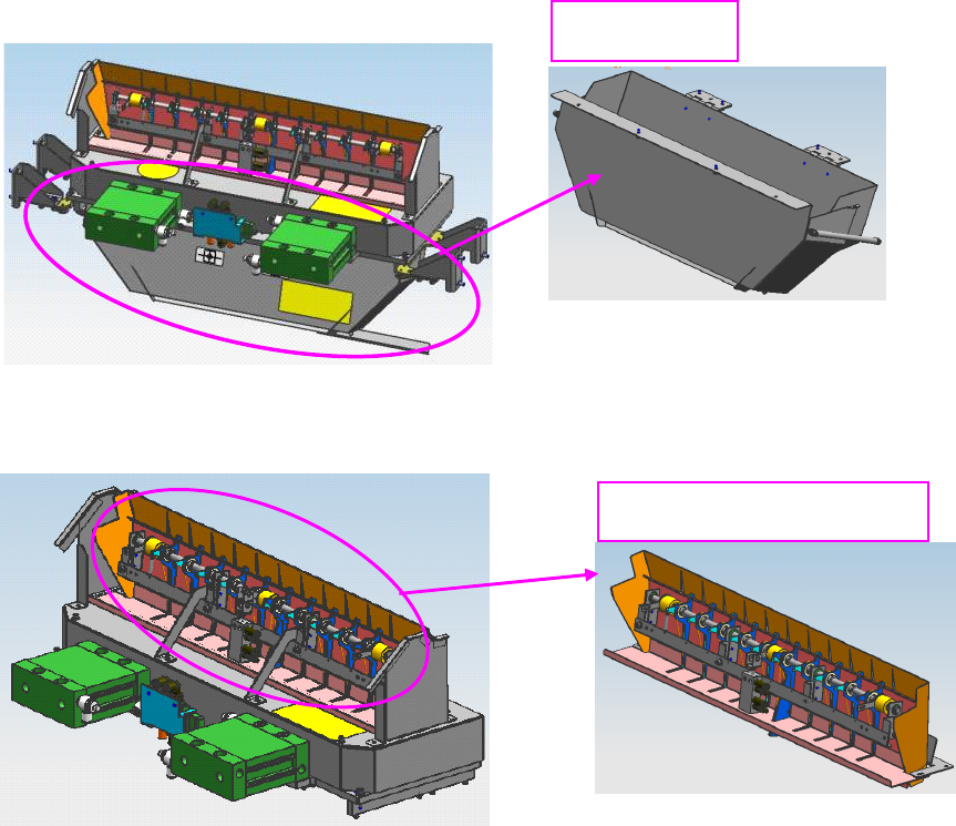 2) 属于固定式台架规格时,请卸下上部排出导轨。