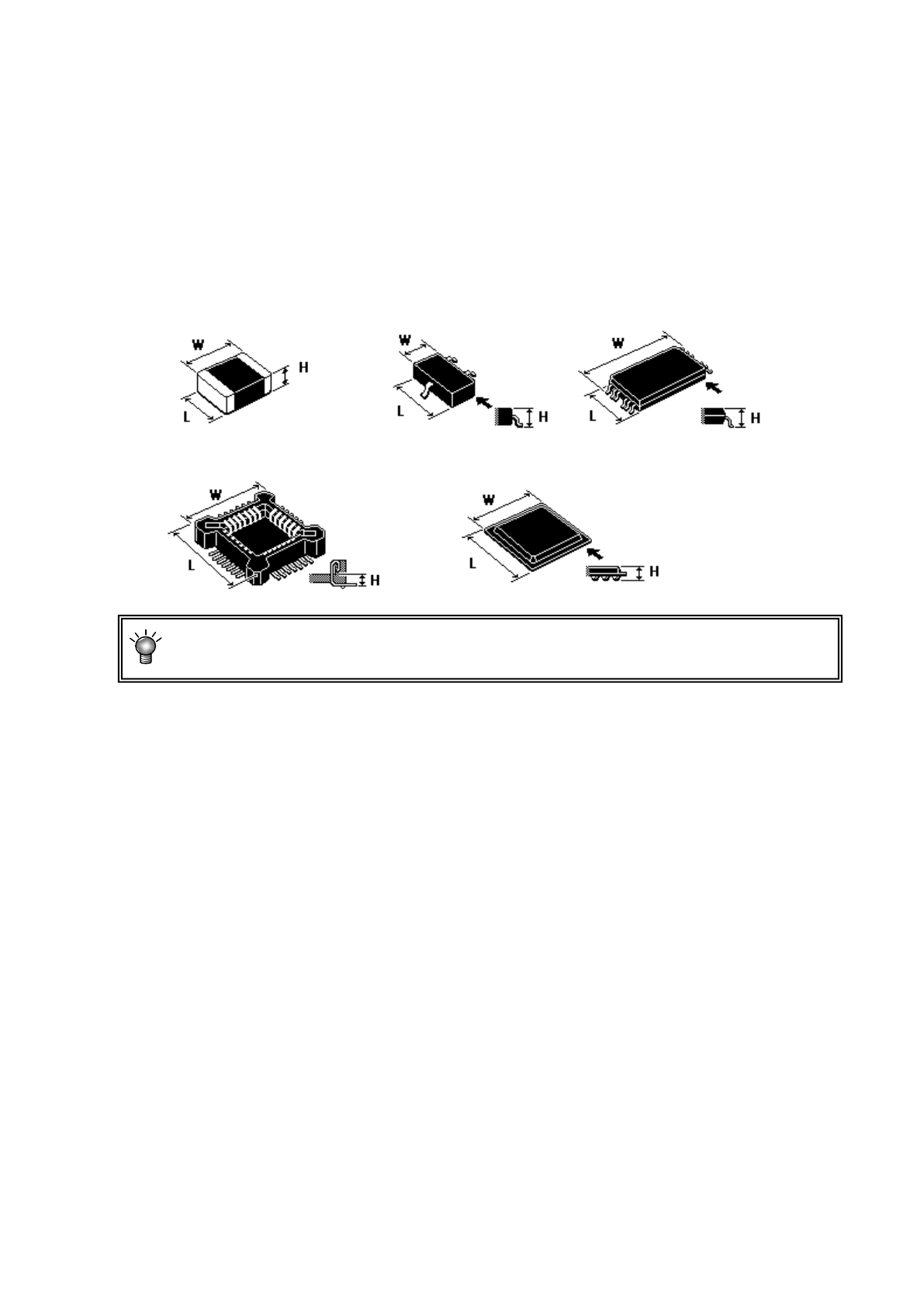 例>W = 外形尺寸 横 L = 外形尺寸 纵 H = 元件高度