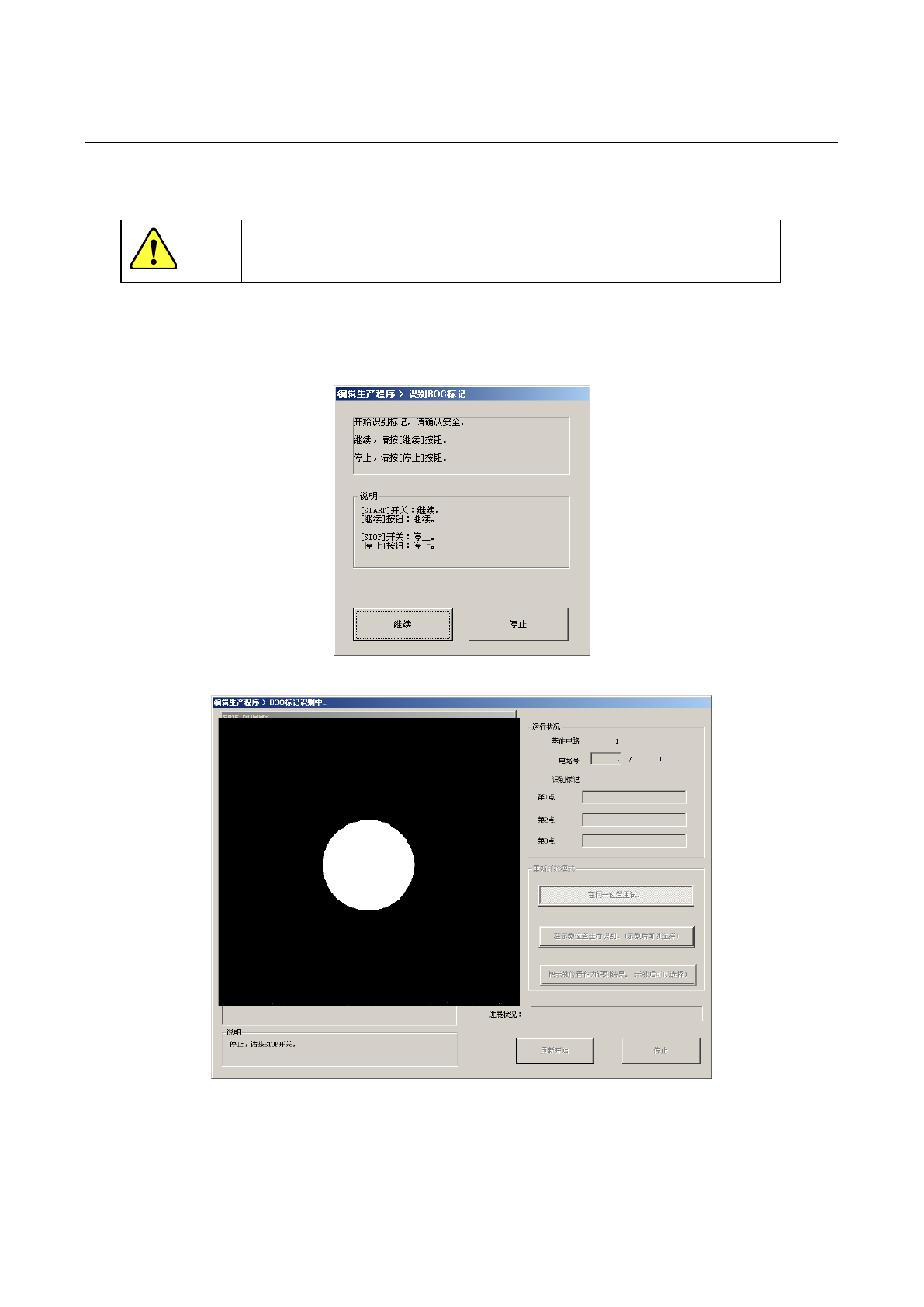 按下[停止]按钮,即退出BOC标记识别画面,返回到编辑程序画面。