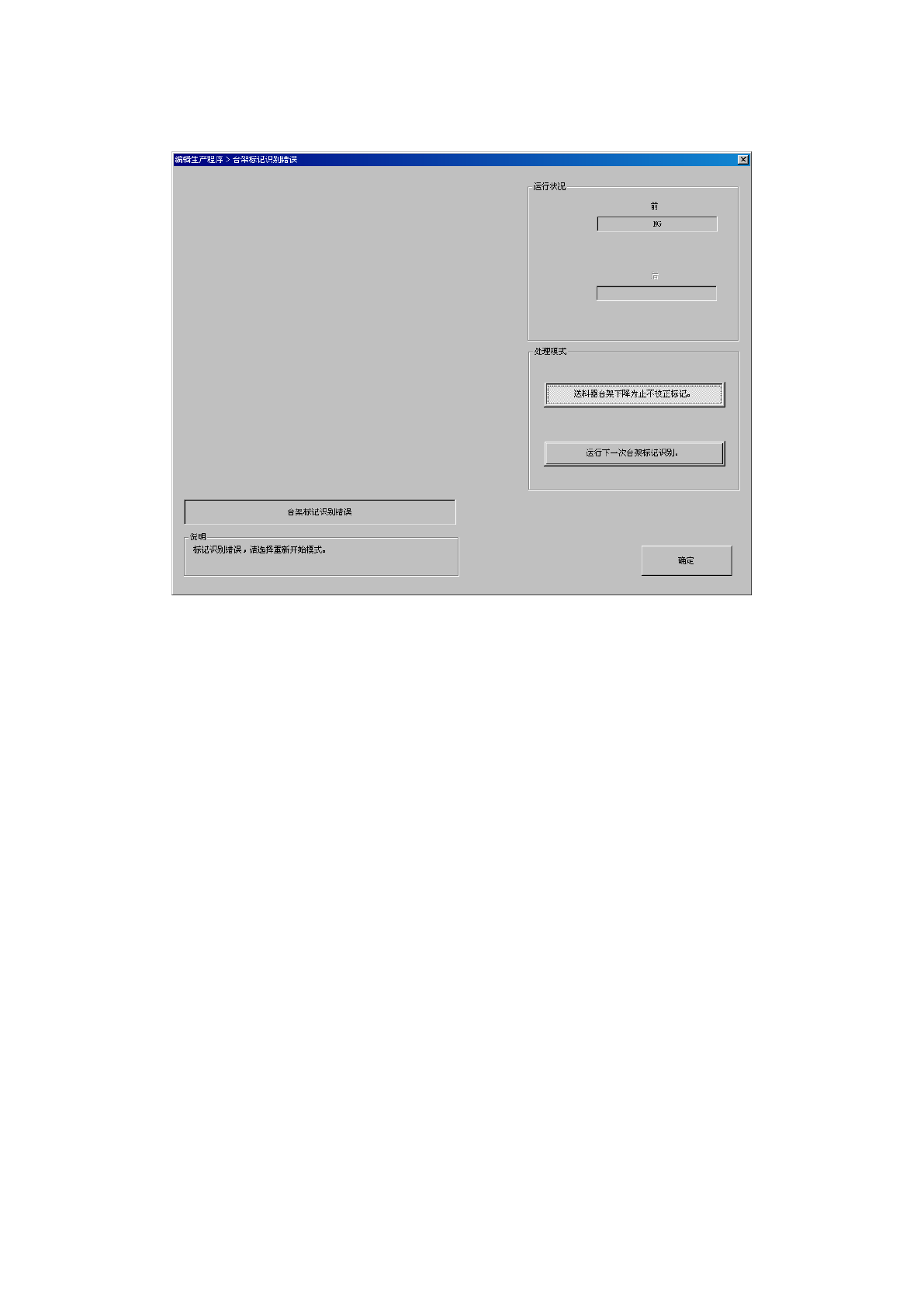 当识别台架标记失败,画面的“说明”栏显示提示信息时,可以选择“处理模式”的项目。