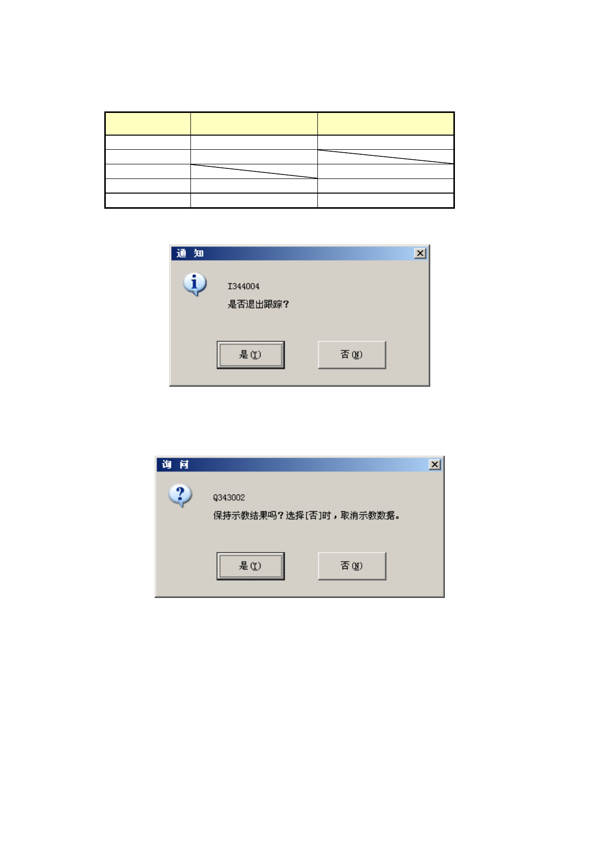 在询问中如选择[否],则放弃跟踪操作中示教的坐标值,回到开始跟踪前的坐标值,结束跟踪。