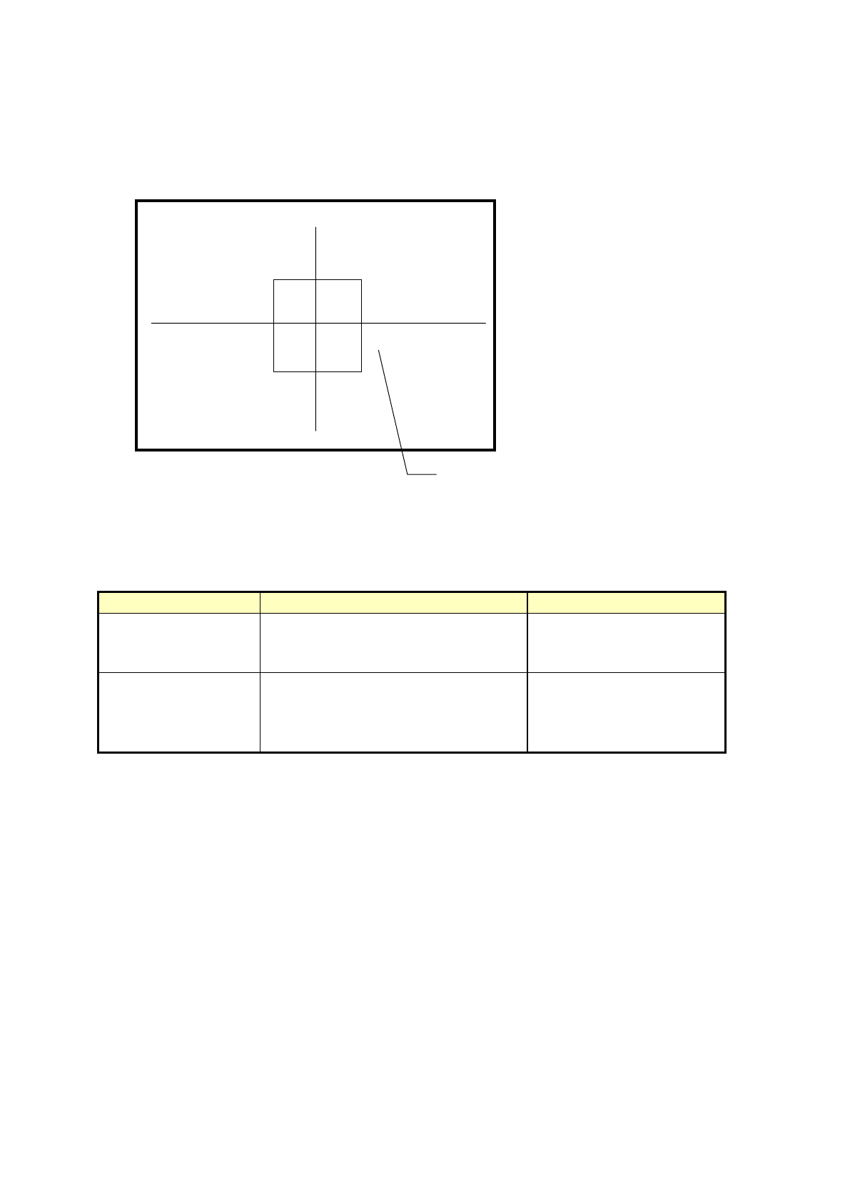 元件尺寸不同,在监视器中显示的元件中心及四角的各有不同,详见下表。