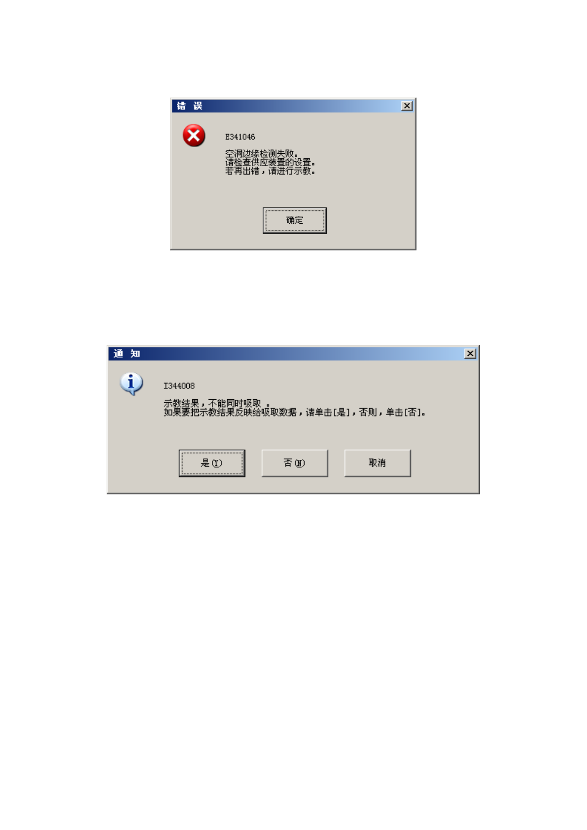 设置的吸取数据与自动示教校正的吸取数据差距过大时,显示如下错误提示。