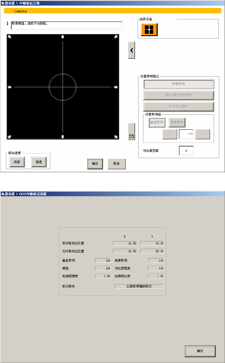 3 设置 OCC 坏板标记阈值 用摄像机识别坏板标记时的阈值