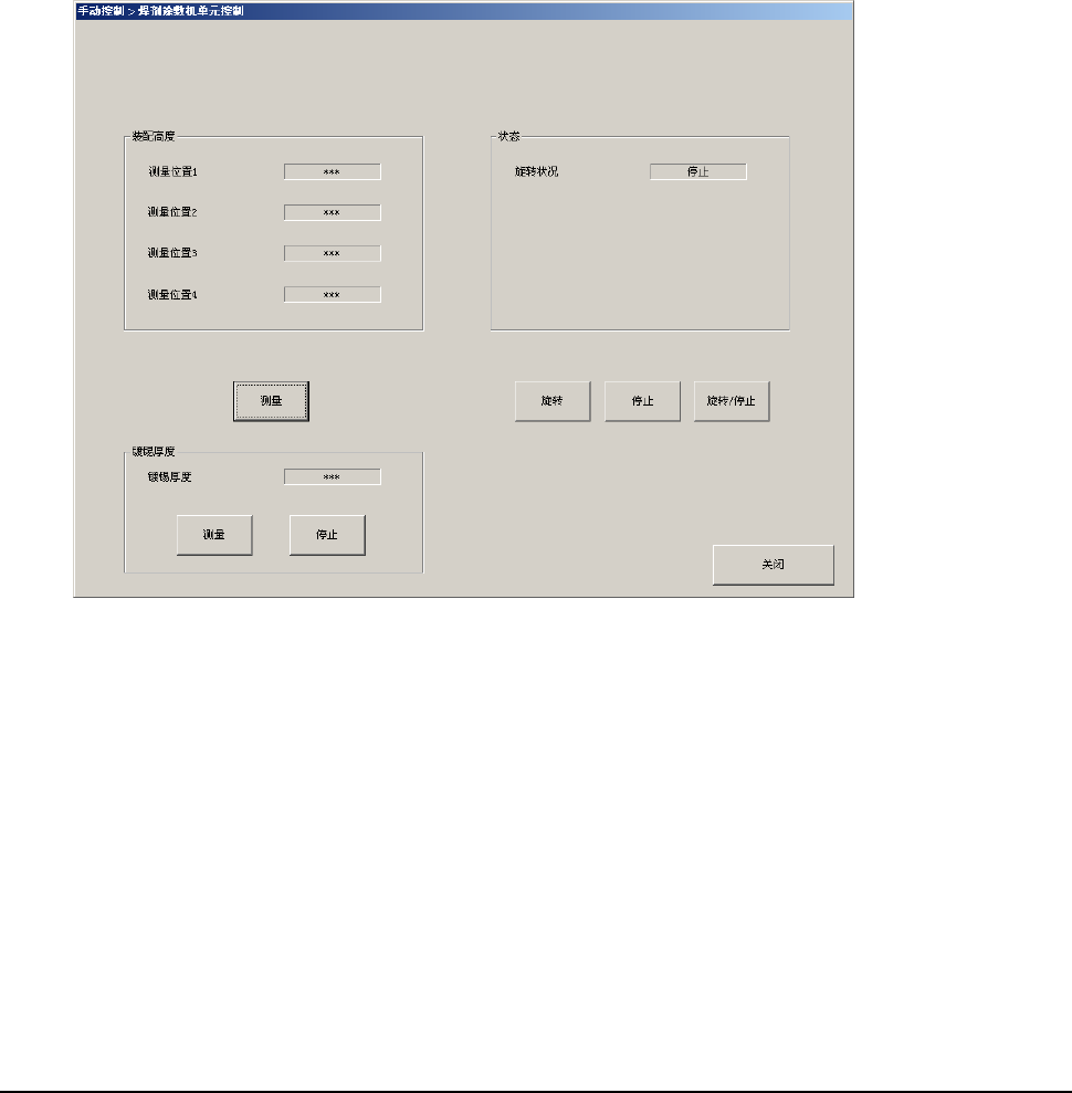 第 2 部 功能详解编 第 9 章 手动控制 9-70 9-9-10 焊剂涂敷机单元控制 从菜单中选择 [ 其他 (O)] - [ 焊剂涂敷机单元控制 (F)] ,或选择命令按钮的 [ 焊剂涂敷机控制 ] 后, 可显示焊剂涂敷机单元控制画面。 只有安装助焊剂涂敷单元选项、旋转型焊锡转印装置的机器,才有显示。 < 助焊剂涂敷装置时 > (1) 装配高度 用 HMS 测量 空腔 4 角的高度,显示测量的结果。 选择 [ 测量 ]…