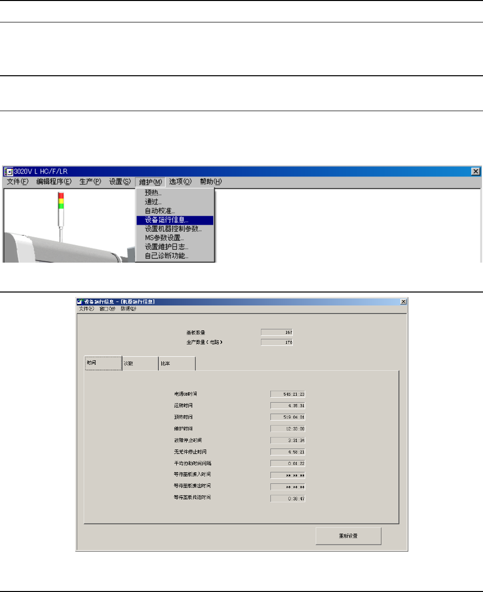显示机器的运行时间(基板生产时间的累计等)、吸嘴拆装次数等设备固有的运行信息。