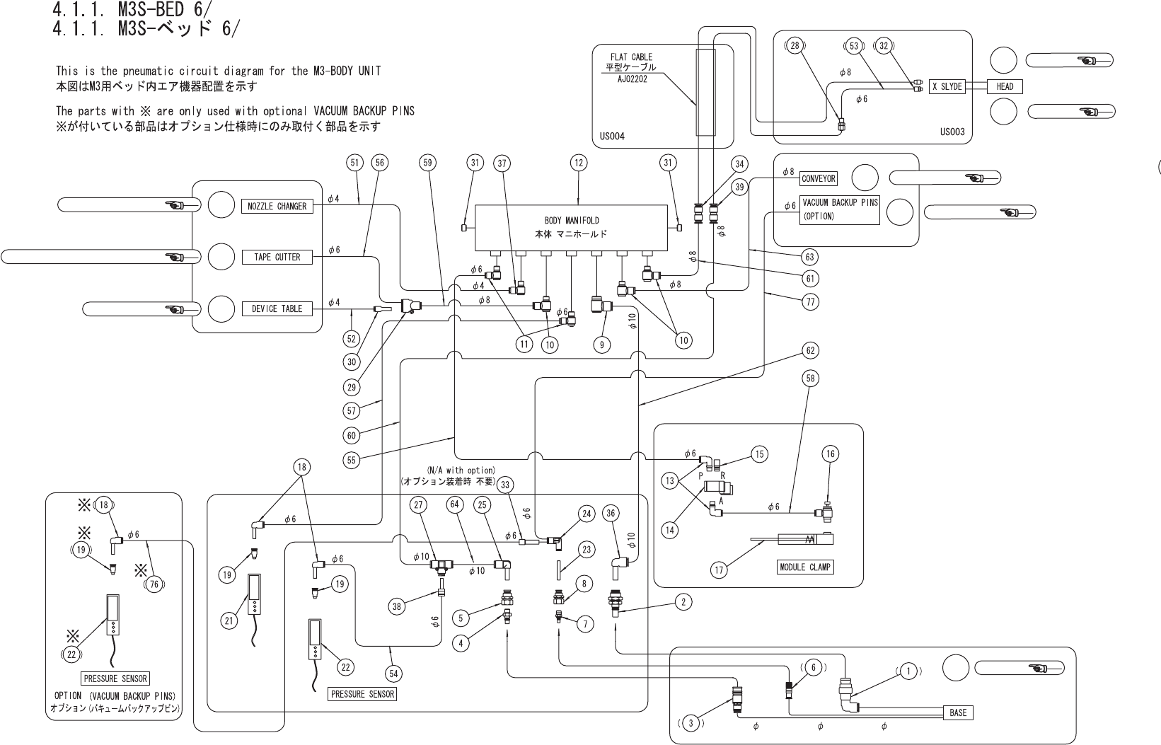 A Ref.HEAD Ref.HEAD a1 a1 a2 a2 i h Ref.DEVICE BASE f f Ref.WASTE TAPE PROCESSING UNIT d d Ref.NOZZLE CHANGER e e c1 c1 Ref.CONVEYOR b b Ref.CONVEYOR Neg press 8 Neg press 6 Pos press 10 Ref.BASE g g UA00490 4. MODULE / …