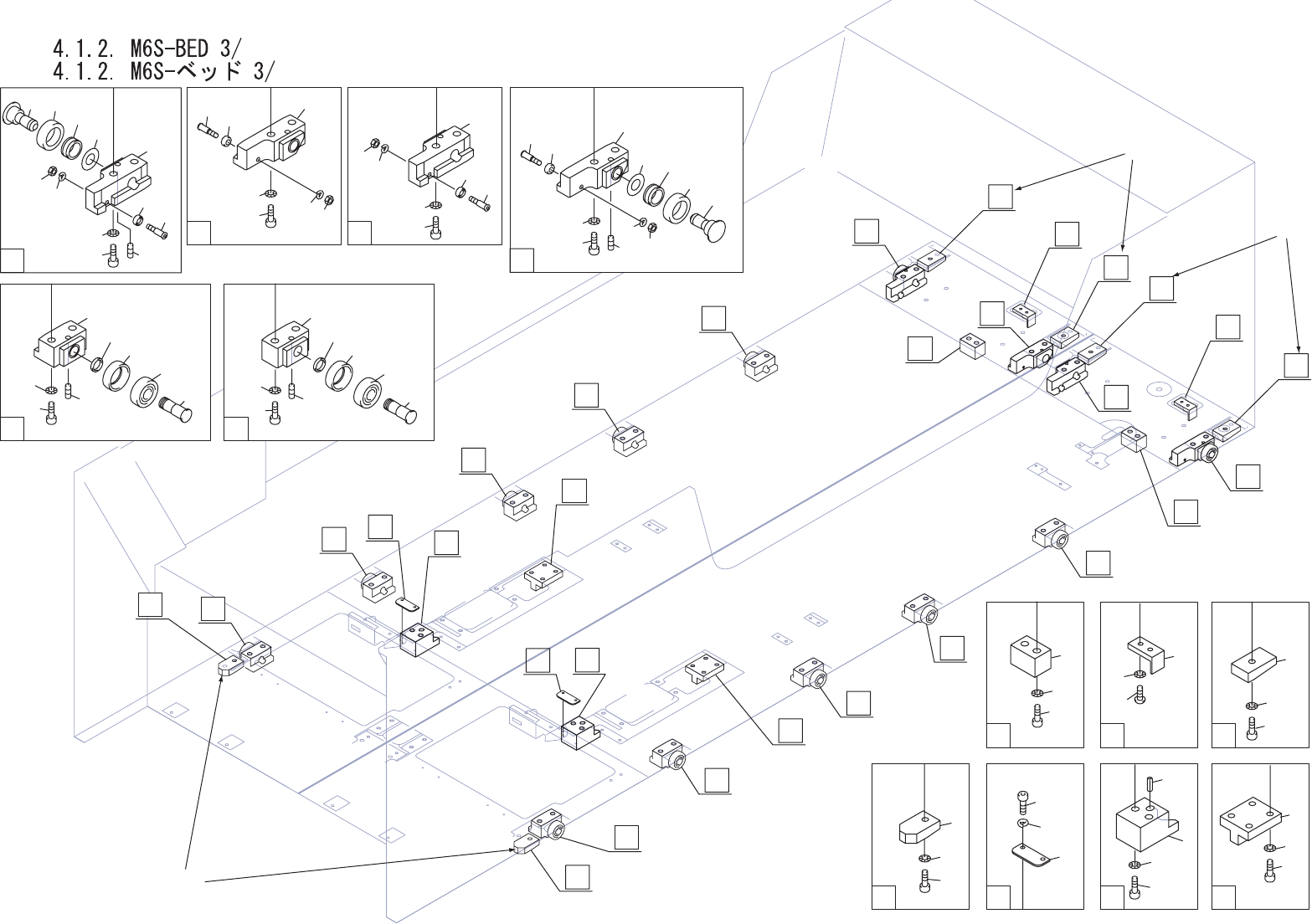 4.1.2. M6S-BED 3/ 4.1.2. M6S-ベッド 3/ UA00390 No. Drg.No. & Code No. QTY Description Rating Materials Remarks 番号 図番 & コード番号 個数 品名 規格 材質 備考 1 PB00501 2 PLATE プレート FE 2 H5274A 4 BOLT, HEX SOCKET ボルト 六角穴 M03X006 FE 3…
