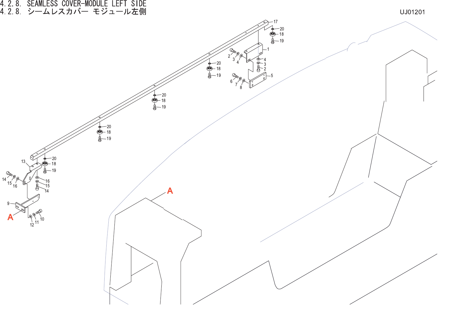 4.2.8. SEAMLESS COVER-MODULE LEFT SIDE 4.2.8. シームレスカバー モジュール左側 UJ01201 No. Drg.No. & Code No. QTY Description Rating Materials Remarks 番号 図番 & コード番号 個数 品名 規格 材質 備考 1 PB27041 1 BKT BKT FE 2 H5289A 4 BOLT, HEX SOC…