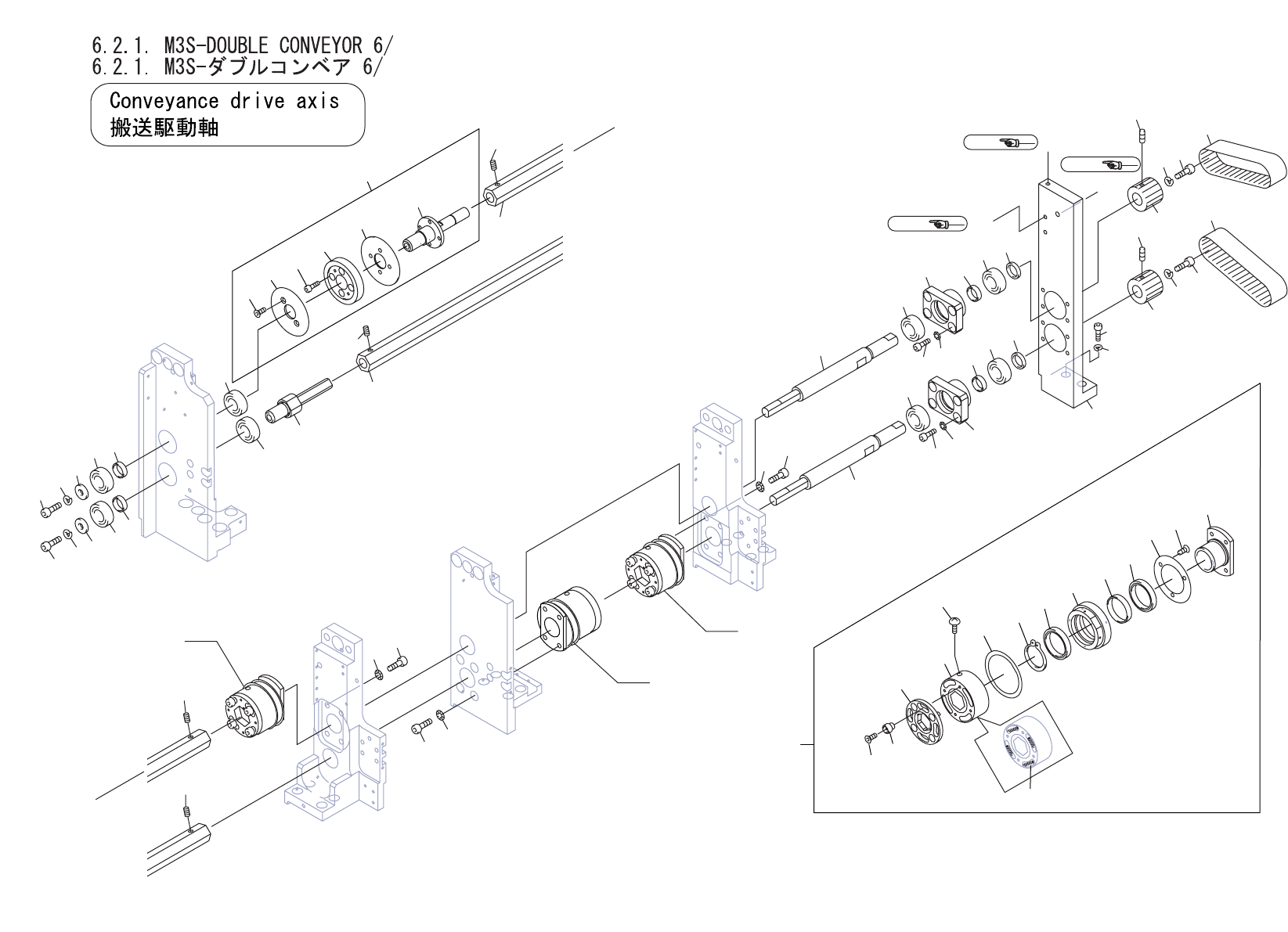 6.2.1. M3S-DOUBLE CONVEYOR 6/ 6.2.1. M3S-ダブルコンベア 6/ UQ01248 No. Drg.No. & Code No. QTY Description Rating Materials Remarks 番号 図番 & コード番号 個数 品名 規格 材質 備考 1 AA1EE04 1 PULLEY プーリ OT 1.1 PM61044 1 FLANGE フランジ FE 1.2…
