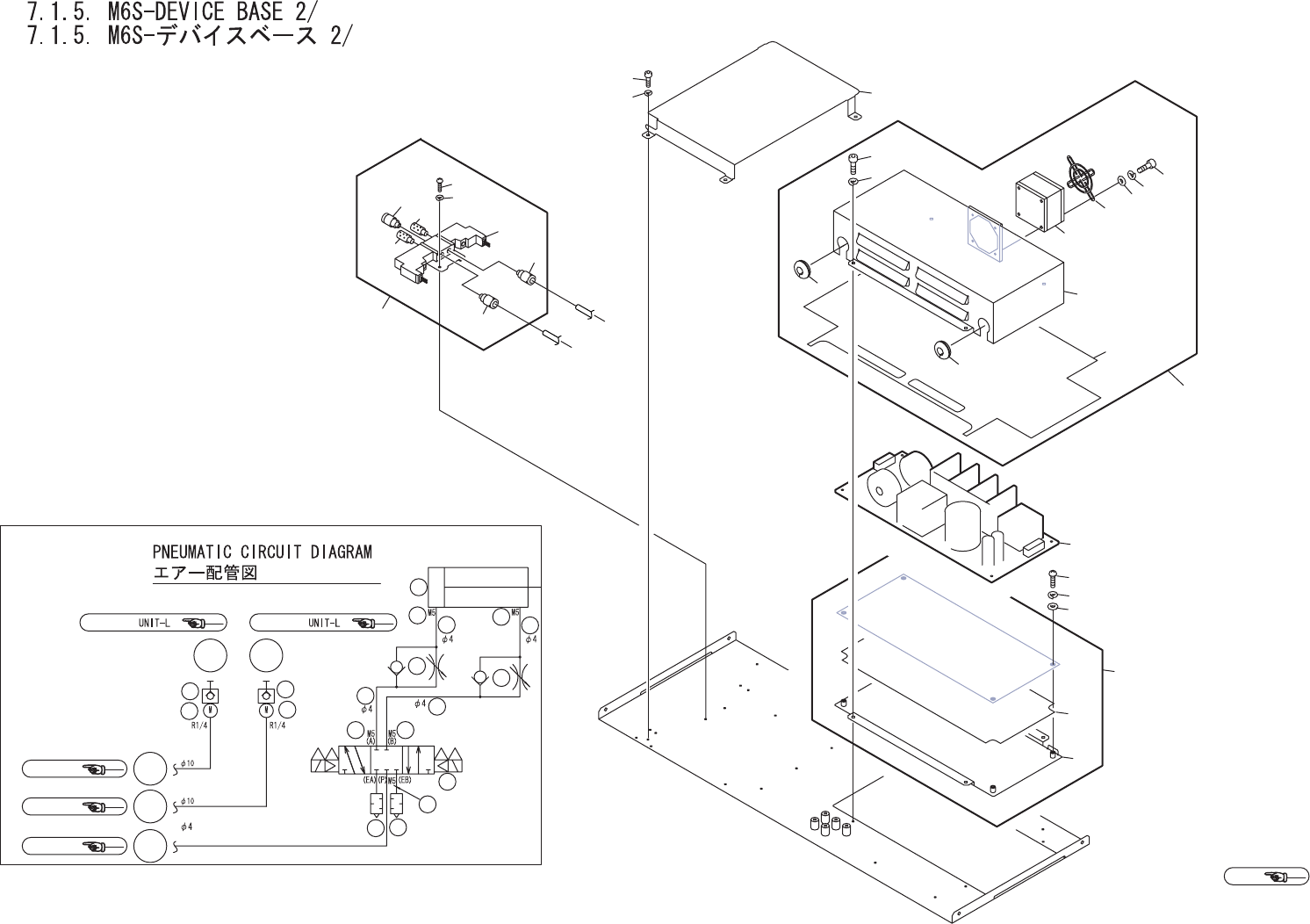 7.1.5. M6S-DEVICE BASE 1/2 7.1.5. M6S-デバイスベース 1/2 UD00826 No. Drg.No. & Code No. QTY Description Rating Materials Remarks 番号 図番 & コード番号 個数 品名 規格 材質 備考 96 PB87890 1 PIN, PIVOT ピン 支点 FE 97 S1024A 2 CIR-CLIP サークリップ…
