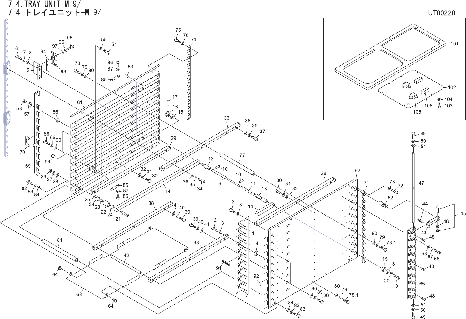 7.4.TRAY UNIT-M 9/ 7.4.トレイユニット-M 9/ UT00220 No. Drg.No. & Code No. QTY Description Rating Materials Remarks 番号 図番 & コード番号 個数 品名 規格 材質 備考 1 PB52631 1 GUIDE ガイド FE 2 H5275A 4 BOLT, HEX SOCKET ボルト 六角穴 M03X008 FE 3 …