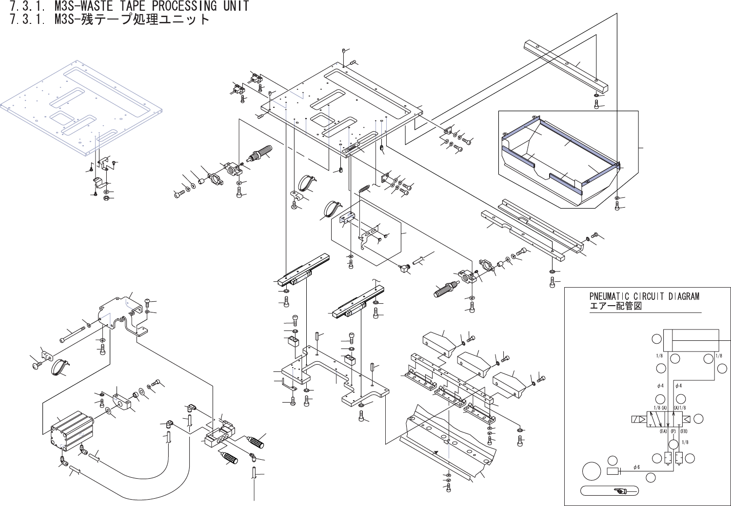 7.3.1. M3S-WASTE TAPE PROCESSING UNIT 7.3.1. M3S-残テープ処理ユニット UC00133 No. Drg.No. & Code No. QTY Description Rating Materials Remarks 番号 図番 & コード番号 個数 品名 規格 材質 備考 1 PM007X0 1 PLATE プレート FE 2 PM04432 2 PIN ピン FE 3 …