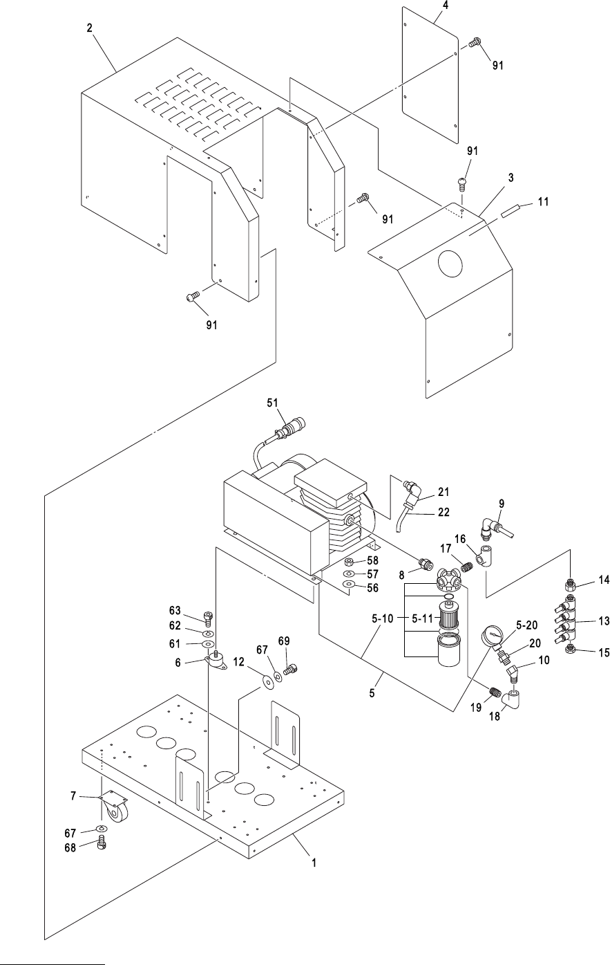 MODEL TIM-5000 9905-001 E- 1 Key No. PART No. PART NAME Q'ty REMA RKS 1 630 070 1043 FRAM E 1 2 630 070 1050 COVER 1 3 630 070 1067 COVER 1 4 630 070 1074 COVER 1 5 630 055 2195 VACUUM PUM P 1 5 -10 630 031 8593 AIR…