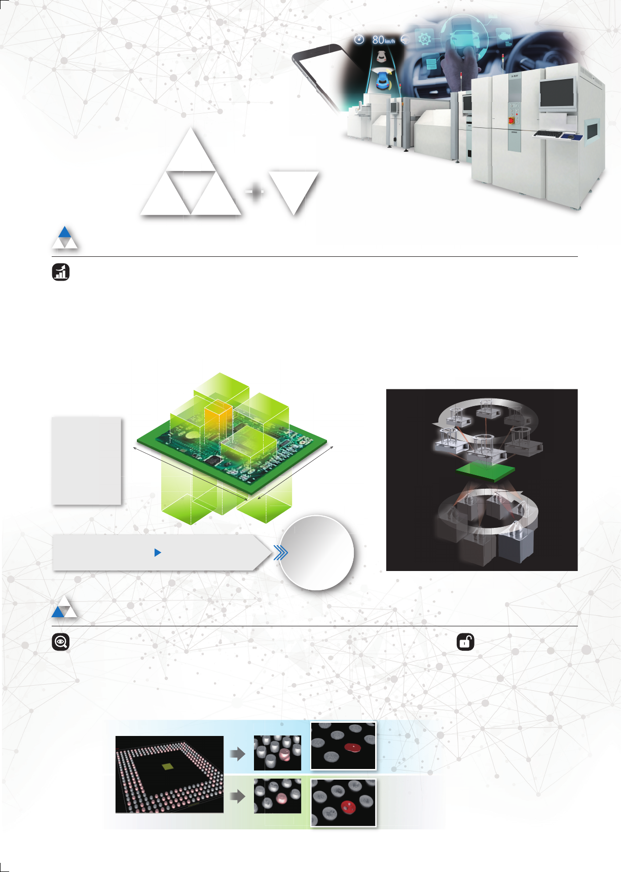 これら、検査スピードの高速化と、自動検査ロジックのカバレッジ拡大により、X 線 検 査 の イ ン ラ イ ン 化 と 全 数・全 面 検 査 を 可 能 に