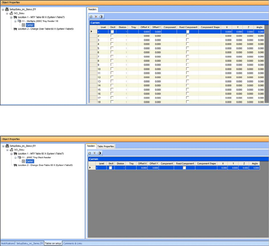 If a Multiple JEDEC tray feeder 18 (SIPLACE JTF-M/JTF-ML for thin trays) was selected, "Carrier" will