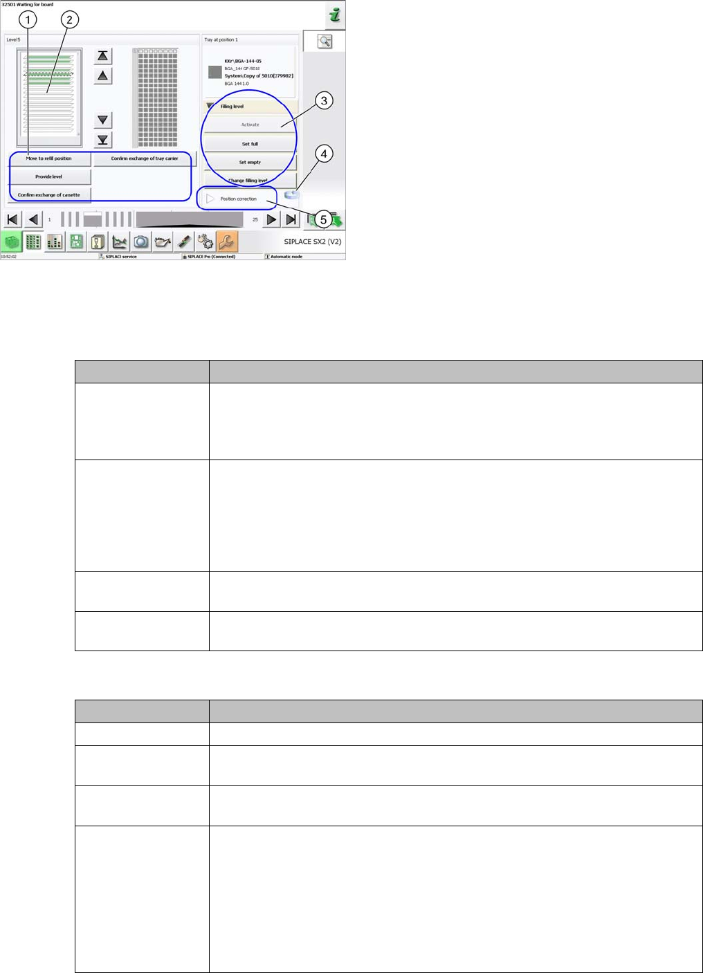 (3) Filling level functions for the selected tray
