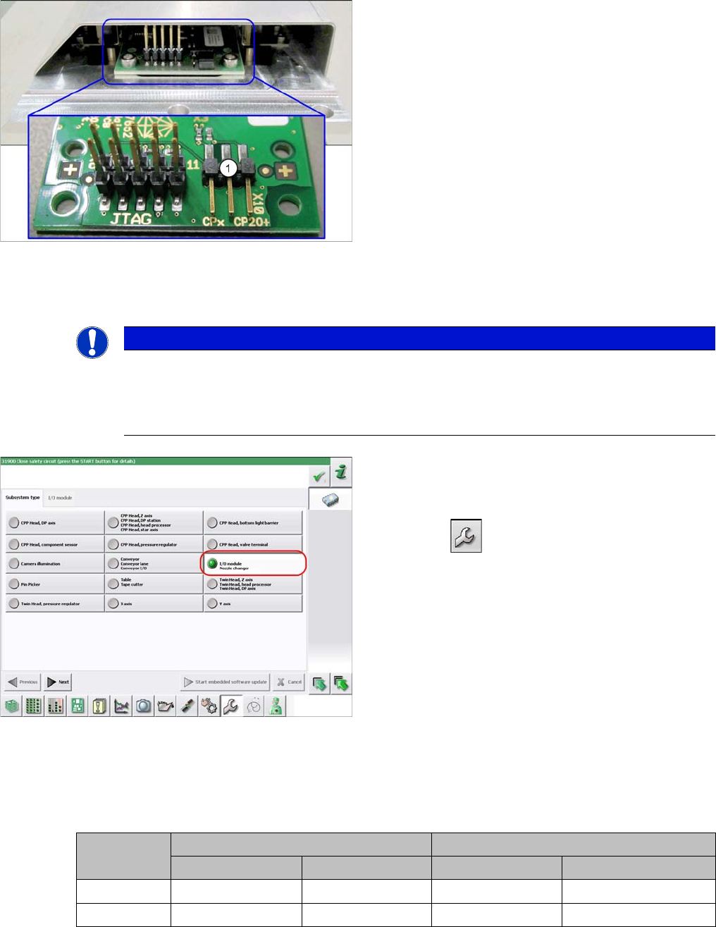 ► If the new nozzle changer is being fitted as a spare part in a machine with I/O module con-