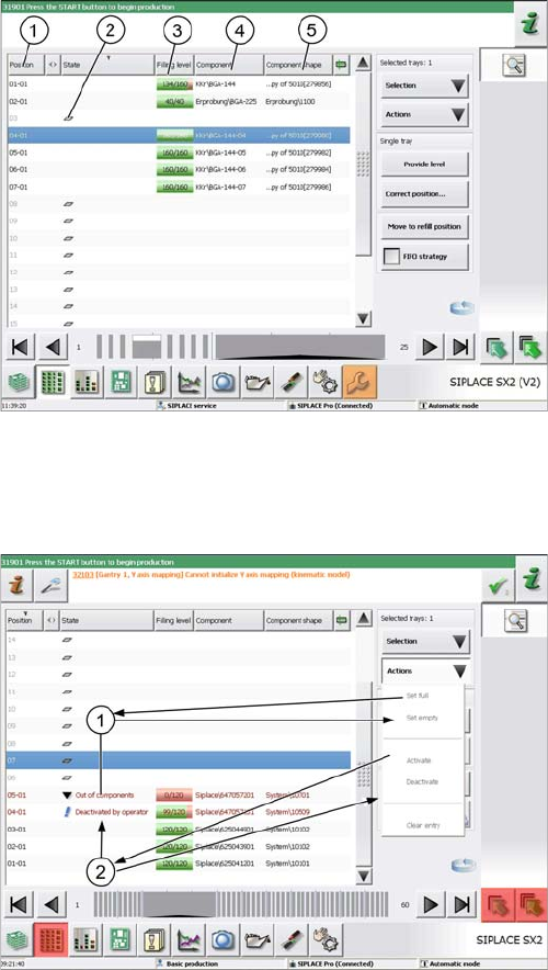 Aufgaben an der Maschine Bedienung JEDEC Tray Feeder in der Station ssoftware 5.3.5 JEDEC Tray Feeder-Einstellungen – Funktionen 56 JEDEC Tray Feeder (JTF-ML) (3) Füllstandsfunktionen des angewählten Trays / Filling leve…