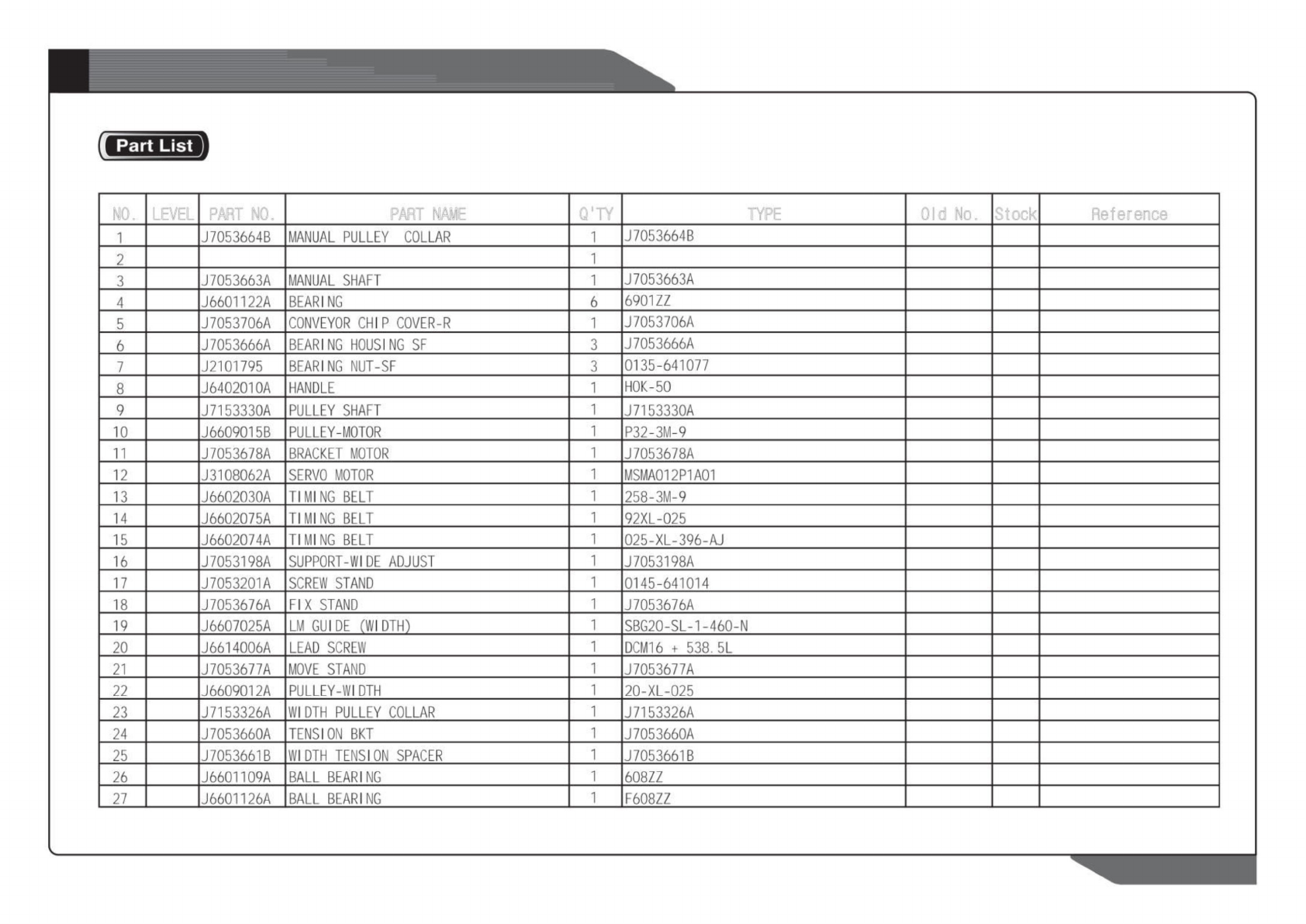J6609012A J7153325A PULLEY WIDTH J6609012A E xitConvey o rAss'y 6 9 Pag e SAM SUNGTECHWIN NO. LEVEL PART NO. PART NAME Q'TY TYPE Old No. Stock Reference Lisf) NO. LEVEL PART NO. PART NAME Q'TY TYPE Ol…