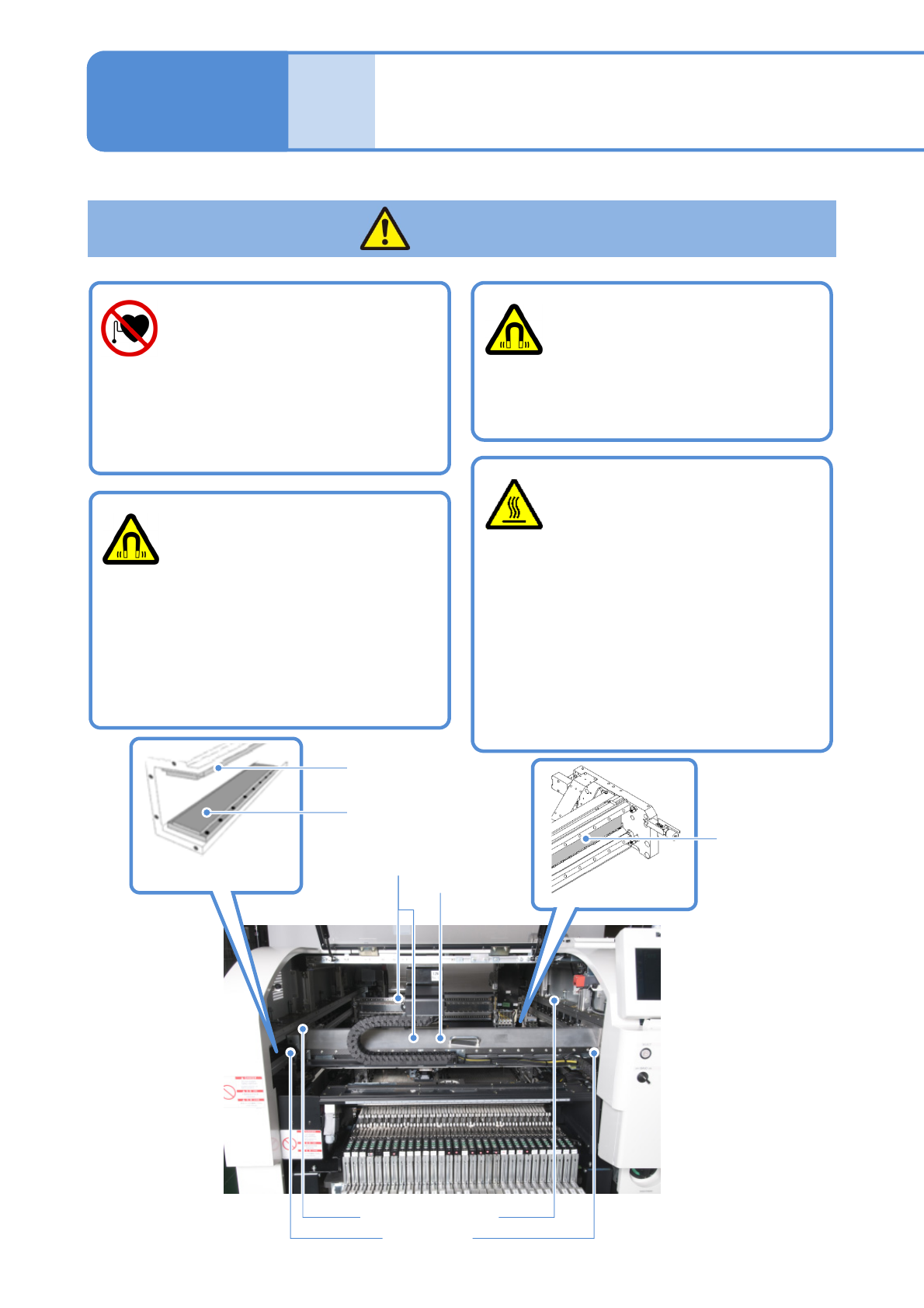 NPM-W 2 EJM7DJ-SF-01N-00 警告 1-1 -6 メンテナンスのときは、 主電源を切る ( けがや感電のおそれ ) ●主電源を切ると、空圧源も連動して 遮断されます。 ●主電源スイッチは、南京錠で施錠し てください。 ●作業中は、注意札を貼り付けてくだ さい。 1 次ライン ( 電源が供給され続ける ) L1 L2 L3 PE メイン ターミナル 主電源スイッチ メンテナンスのときは、 1次ラインまでの感電に 注意す…