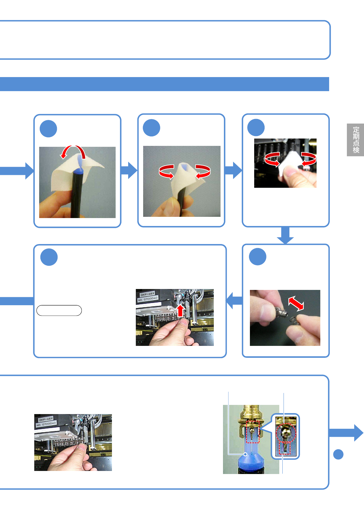 NPM-W 2 EJM7DJ-MB-07M-00 ノズルホルダーシャフトを清掃する ノズルホルダーの清掃 4 ( 軽量 16/12/8 ノズルヘッド ( オプション )) 7-1 -7 10 清掃の準備をする ■ノズルホルダーシャフト 清掃ツール ■クリーニングペーパー ( 約 40 × 50 mm) φ 5 : 8 ノズルヘッド用 12 ノズルヘッド用 φ 4 : 16 ノズルヘッド用 11 清掃ツールに クリーニング ペーパーを挟む…