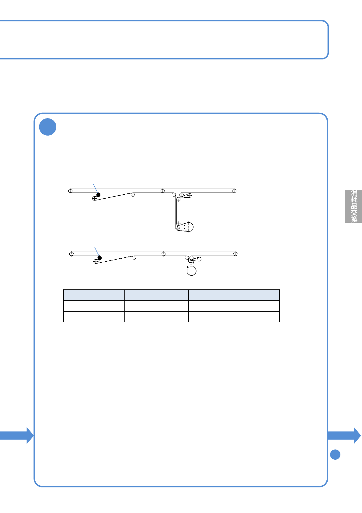 NPM-W 2 EJM7DJ-MB-12M-00 12-2 -2 8 新しいベルトを取り付ける タイプ ベルトの長さ [mm] 品番 固定レール 1602 N510064634AA 可動レール 1394 MTMK0 00184AA ●事前にテンションプーリーのねじを緩める。 ( 各 1 か所 ) ■ シングルコンベヤー(各 1 本)、デュアルコンベヤー(各 2 本) 手順 へ 9 ●ベルトの表面、裏面について 表面 : 文字印刷なし 裏…