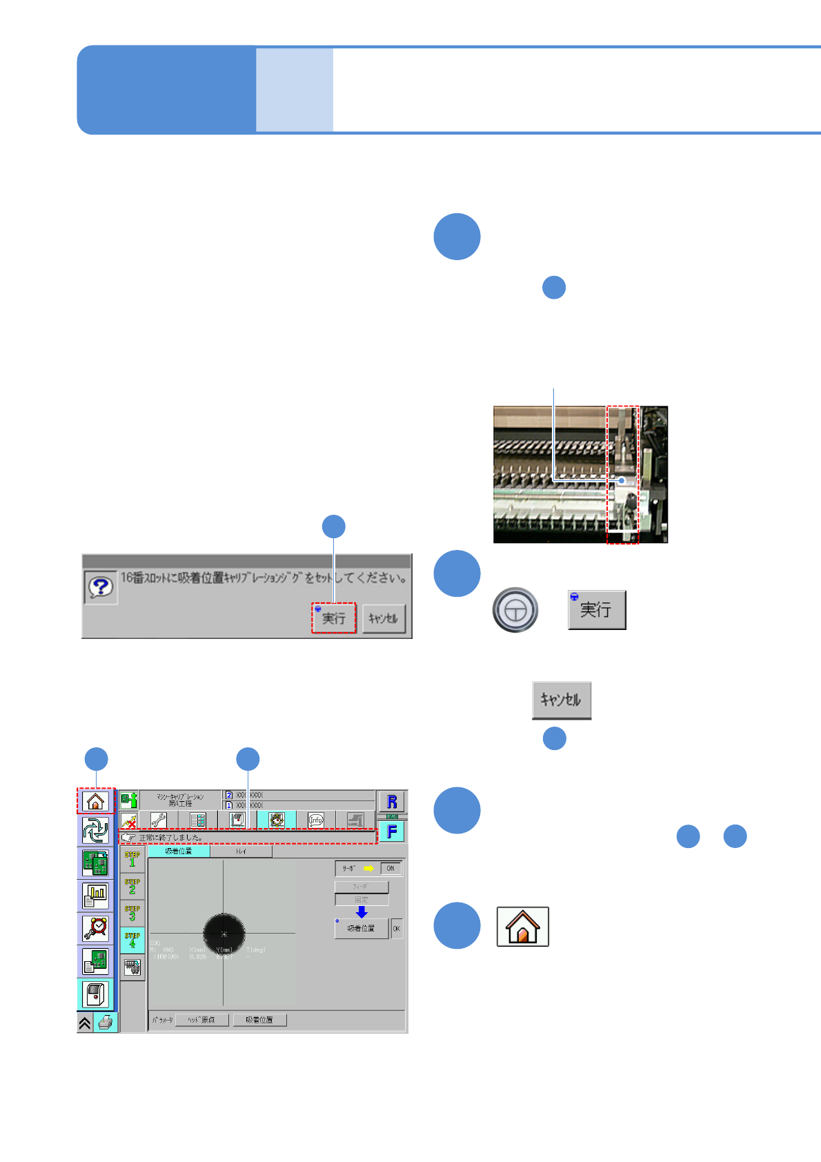 NPM-W 2 EJM7DJ-MB-13M-00 16 吸着位置高さティーチジグを取 り付ける。 13-18 -5 吸着位置 3 18 正常に終了したことを確認する ●他のテーブルでも、手順 ~ を繰り返す。 18 1 17 19 19 17 ■キャンセルするとき ( の画面のまま ) 3 メッセージを確認して 17 + メンテナンス 編 13-18 ( キャリブレーションが開始される ) ●手順 で選んだテーブルの、 右側の 29 番…