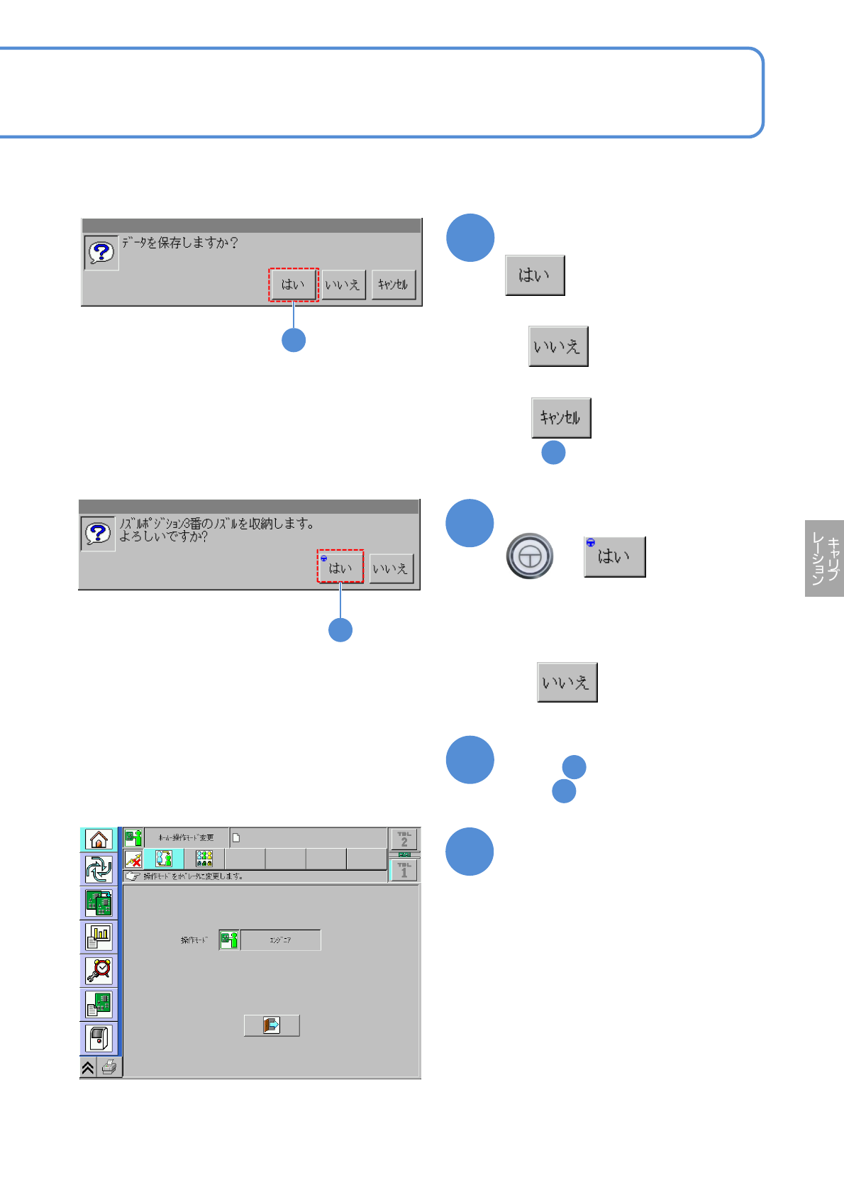 NPM-W 2 EJM7DJ-MB-13M-00 13-19 -5 トレイ 3 メンテナンス 編 13-19 19 安全カバーを開く 20 ノズルをノズルチェンジャー No.1 1 から取り外す 18 サーボスイッチ OFF 22 21 サーボスイッチ ON 安全カバーを閉じる