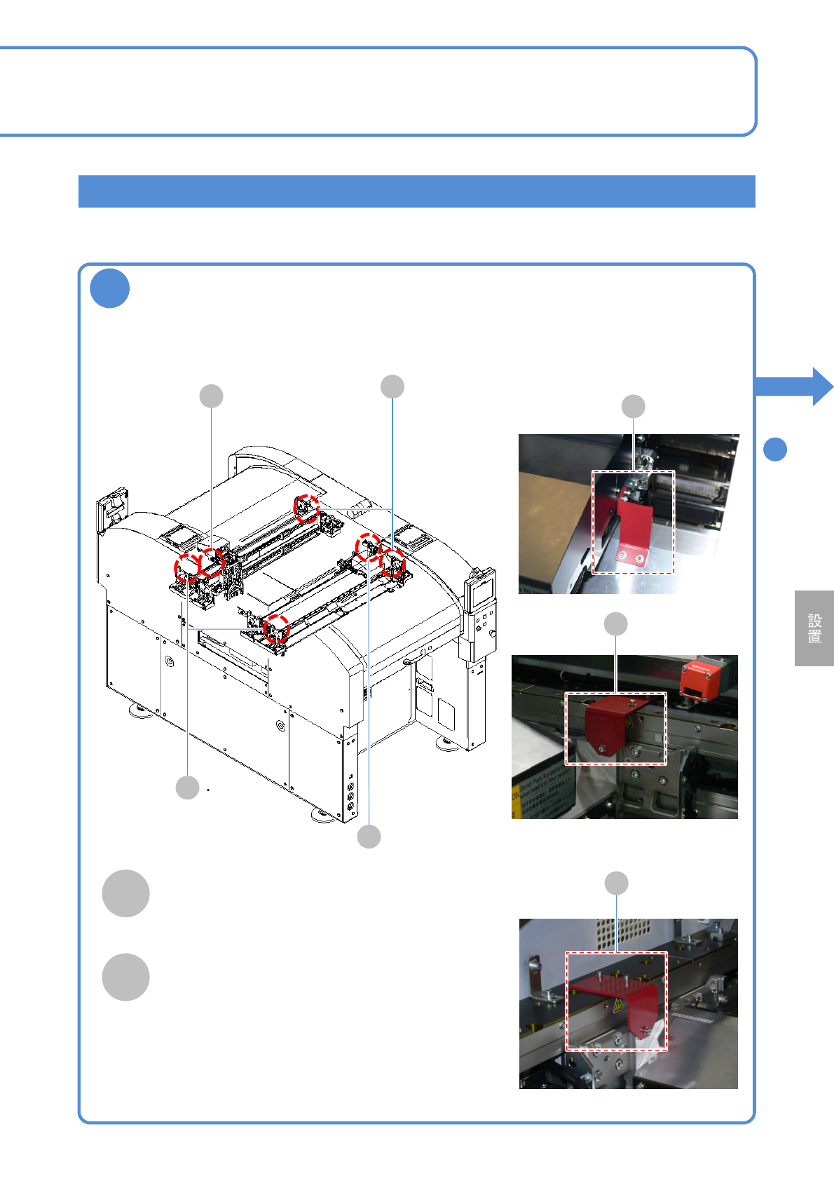 NPM-W 2 EJM7DJ-MB-14M-00 14-3 -5 4 水平出しをする 水準器を右図の位置に設置する。 ●水準器: 4 か所 調整ボルトで水平に調整する。 ● 1 目盛 (0.02 mm/m) 以下になるように する。 ●調整ボルト: 4 本 ロックナットで固定する。 据え付け後も、半年に一回は水平確認することをお 勧めします。 お願い 水準器の設置位置 アジャストボルト位置 基板搬送高さ 900 ~ 920 mm 設置 …