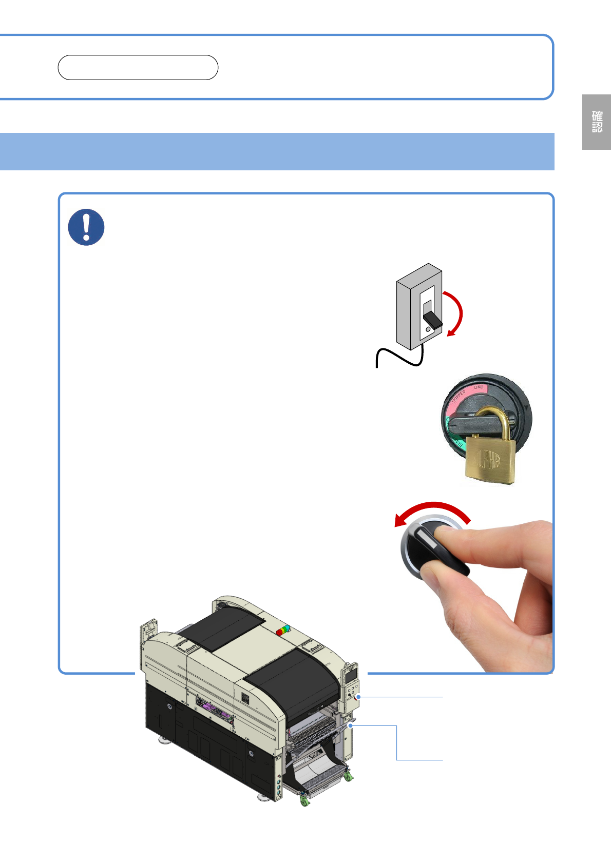 NPM-W 2 EJM7DJ-SF-01N-00 危険 安全スイッチ ( 後側:フィーダー テーブルカバー内部 ) 1-1 -3 安全スイッチを 無効にしない ( けがのおそれ ) 補給部開閉スイッチ ●安全スイッチの機能 があります。 ●カバー内に設置 安全スイッチ ( マガジン扉内 ) 安全スイッチ ( 後側:安全カバー内部 ) 安全スイッチ ( 前側:安全カバー内部 ) ●運転中に安全カバーの安全スイッチを検知 すると、運転が止ま…