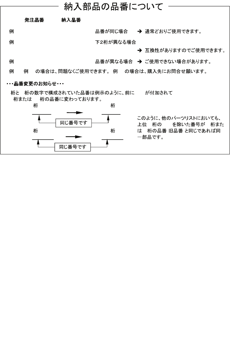 Part numbers previously organized with 7 or 8 digits have been revised to include a new 101