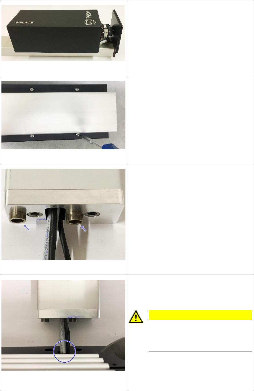 Retrofit the XFVS c amera position Ausgabe 08/2017 Edition 22 Fig. 18 : Mounting the c amera ho using ► Slide the camera ho using onto t he camera . Fig. 19 : Tightening the screws at the camera ho using ► Turn the cam e…
