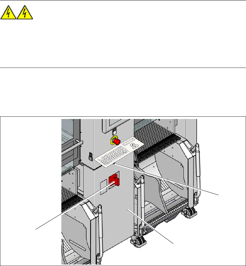 Betriebsanleitung SIPLACE SX4/DX4 2 Betriebssicherheit Ab Softwareversion SR.706.xx Ausgabe 06/2012 DE 2.8 Restspannungen und Entladezeiten im Automaten 79 Abb. 2.8 - 2 Messstelle X200 am Stromversorgungseinschub (1) V e…